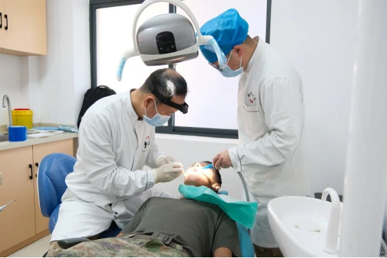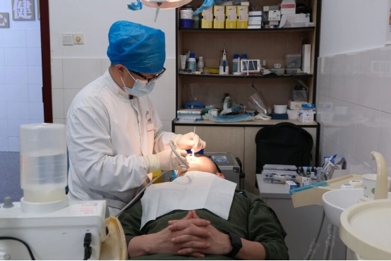 每当一天的巡诊临近结束时,口腔诊室里依然是一番忙碌的景象。口腔医院许杰、成岗两位专家,耐心接诊每一位患者,检查、洁牙、拔牙……一丝不苟、精准细致。直到晚上9点多,他们仍在忙碌:“战友和家属平时看牙不方便,我们多忙一会儿,就少让大家跑一趟。”