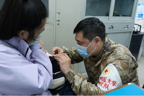 长时间高强度训练,让不少人员出现眼部疲劳、干涩等。西京医院眼科侯旭副主任医师,巡诊中敏锐发现一名官兵眼部不适,主动上前问诊,最终诊断为结膜下出血并快速给出用药方案。巡诊结束时,其眼部症状已基本缓解,“本打算过几天请假去看病,多亏了侯教授,没想到这么快就解决了”。