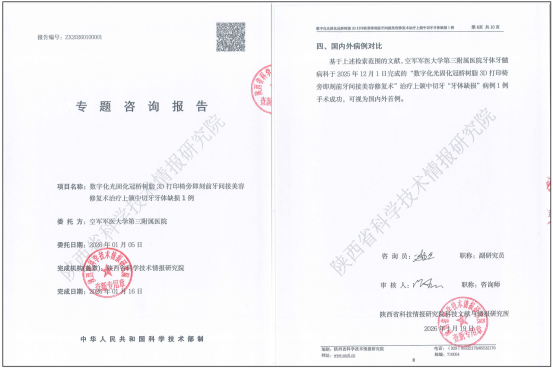 经科技查新,该项技术是医院在数字化口腔修复领域的又一标志性突破,也为前牙缺损患者提供了更高效、更微创、更自然的全新诊疗路径。