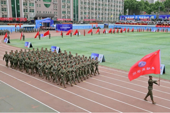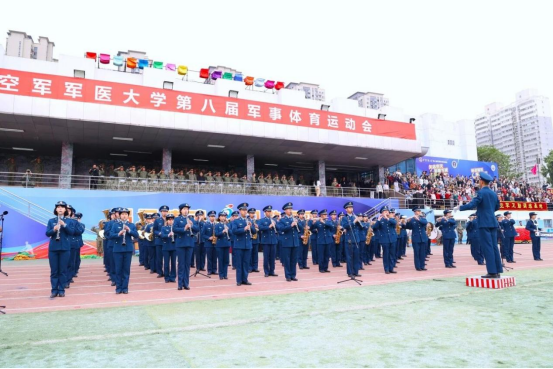旌旗猎猎,战歌嘹亮。4月28日上午8时整,大学“强军铸魂,卫勤风采”第八届军事体育运动会盛大开幕。大学罗正学校长、王大公政委,崔铁振副政委,樊代明院士、窦科峰院士,待遇五级和专业技术三级以上专家教授代表,机关处(办)领导、各单位主官、师生员工代表齐聚绿茵场,以昂扬奋进的精神面貌和敢打必胜的战斗作风共同迎接属于空医大人的体育盛会。
