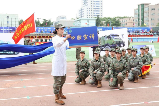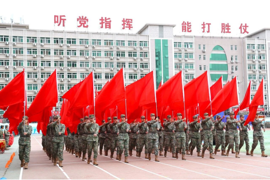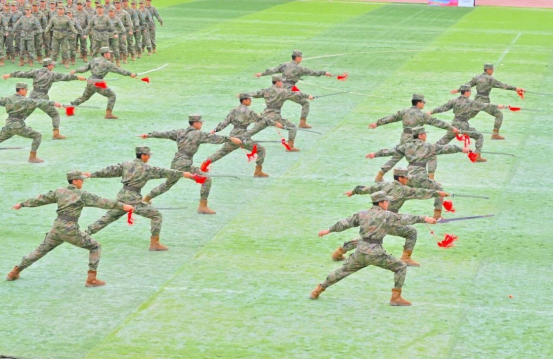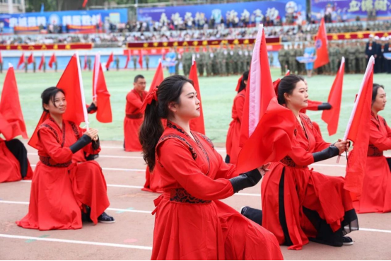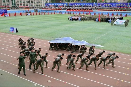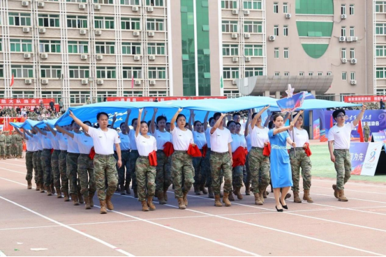 团体操展演中,基础医学院学员方阵不断变换的阵形色彩浪潮,从巨大的“八一”字样到炽热的“红十字”标识,在满含青春气息的氛围中,展示军大学子“搏击长空心向党,飞行万里不迷航”的赤胆忠诚和坚定信仰。